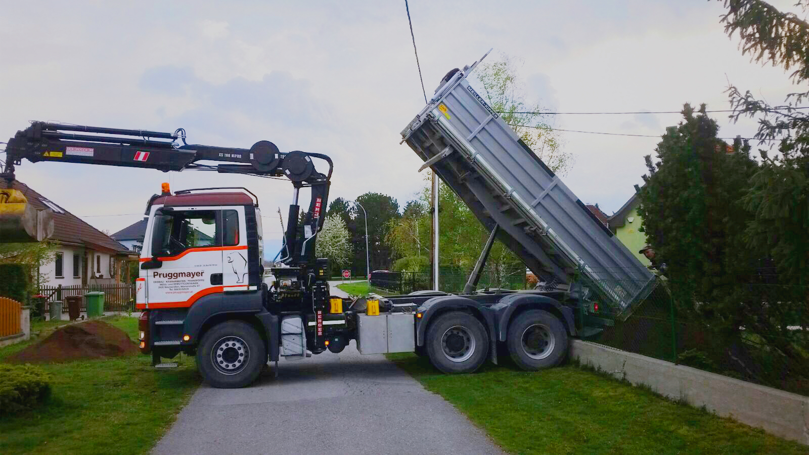 Die breite Leistungspalette bietet einerseits Transporte von Gütern wie z.B. Sand und Schotter, andererseits auch Bagger- und Abbrucharbeiten, bis hin zum Winterdienst, sowie Container– und Entsorgungsdienst.